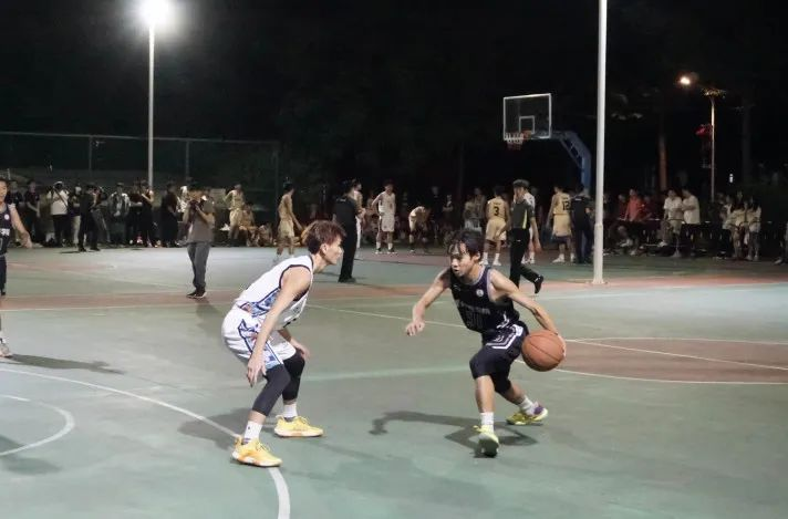 灯光直直倾泻在球场,