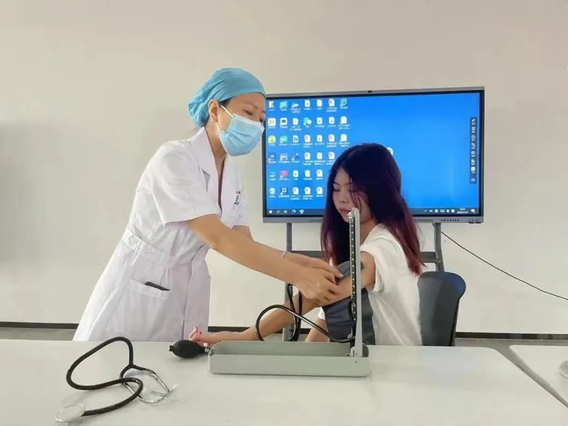 2023年11月7日中午,“匠心为民”社会实践队在院士楼616组织开展了健康普查技能培训,此次培训主讲人为15vip太阳集团护理专业教师林淡芸。林老师详细阐述了电子血压计、水银血压计的使用方法,向队员们示范正确的操作,并让队员们两两一组进行实操训练。经过反复练习,绝大部分队员已熟练掌握测量血压的方法。