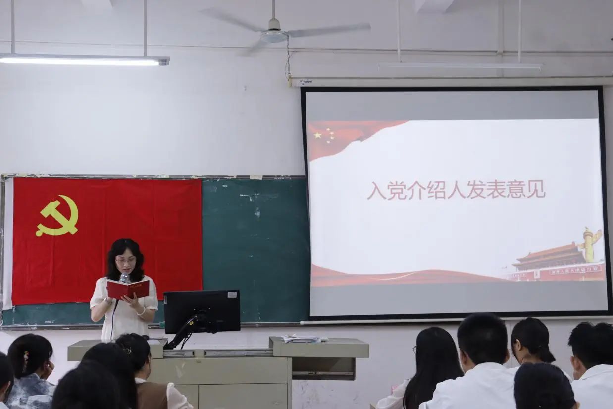 洪颖茵等13名同志依次上台向支部大会宣读入党志愿书,并由入党介绍人发表意见。洪颖茵等13名同志在作为入党积极分子期间严格要求自身行为规范,积极参与社会实践活动,掌握做好本专业的知识和本领,努力提高自身素质,积极向党组织靠拢。