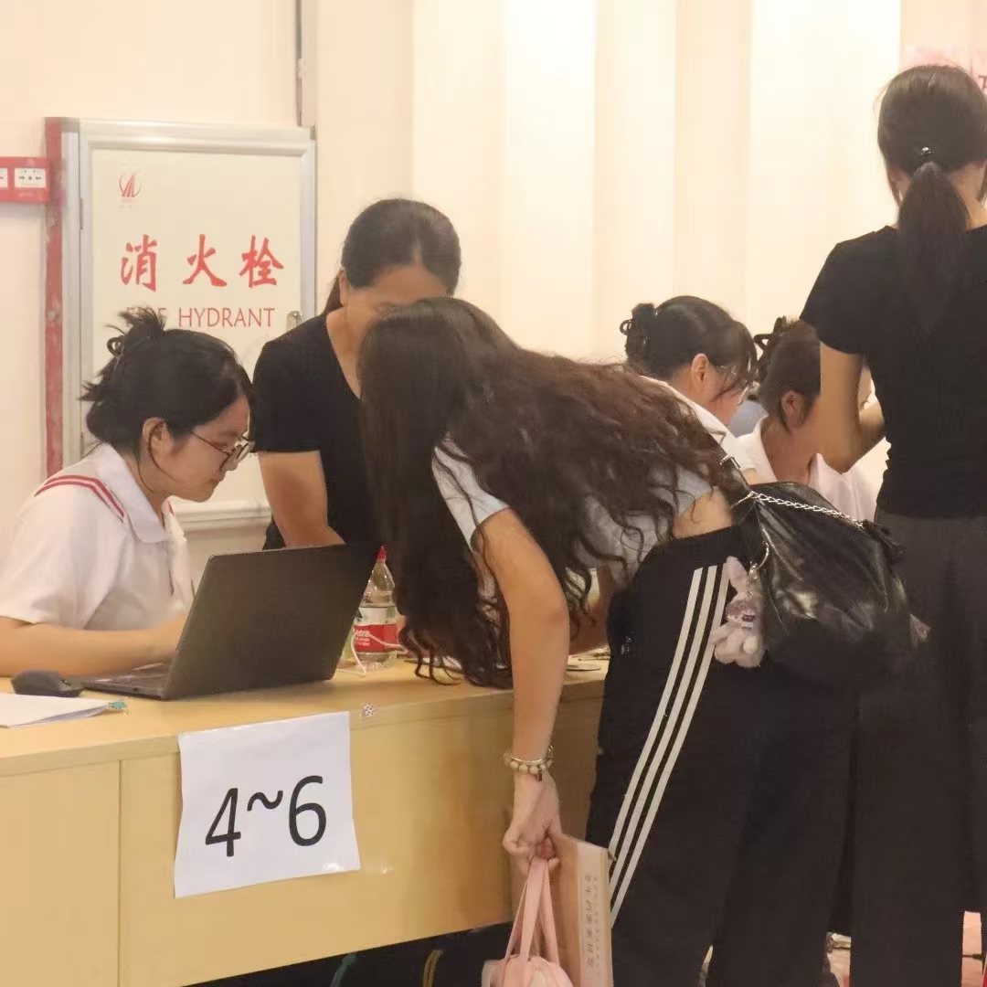 陆陆续续前来送孩子入学报到的家长们