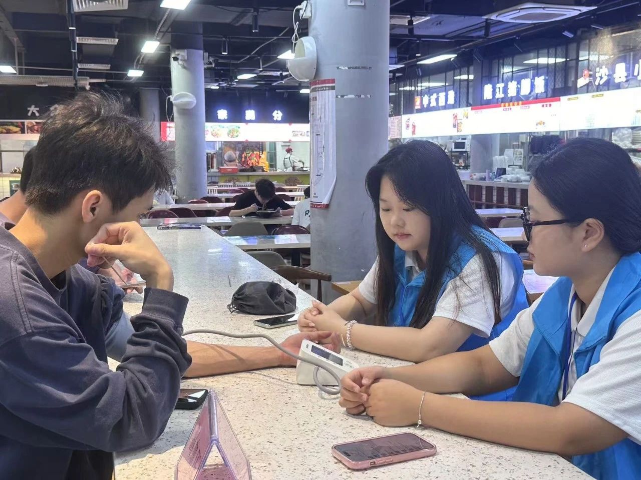 志愿者们希望通过这次测血糖量血压的活动,让全体师生和后勤管理人员对高血糖、高血压有进一步的了解,以及向他们普及高血糖、高血压会引发的各种并发症,进而增强大家守护健康的意识。
