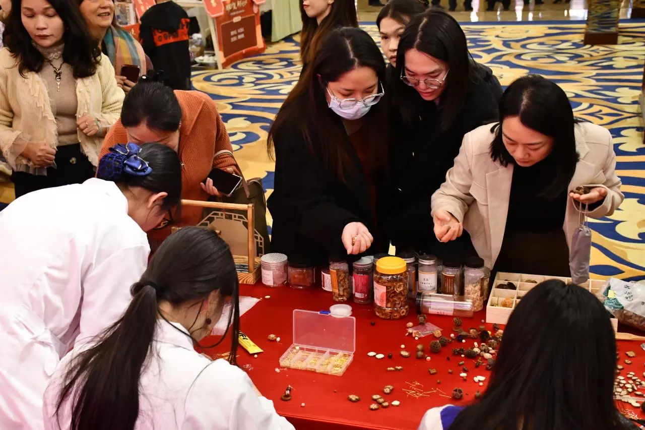中药材饰品彰显独特魅力,引来众多嘉宾围观,工作人员细致讲解其内涵,让每位参与者都能亲手制作,体验中医药文化的独特魅力。