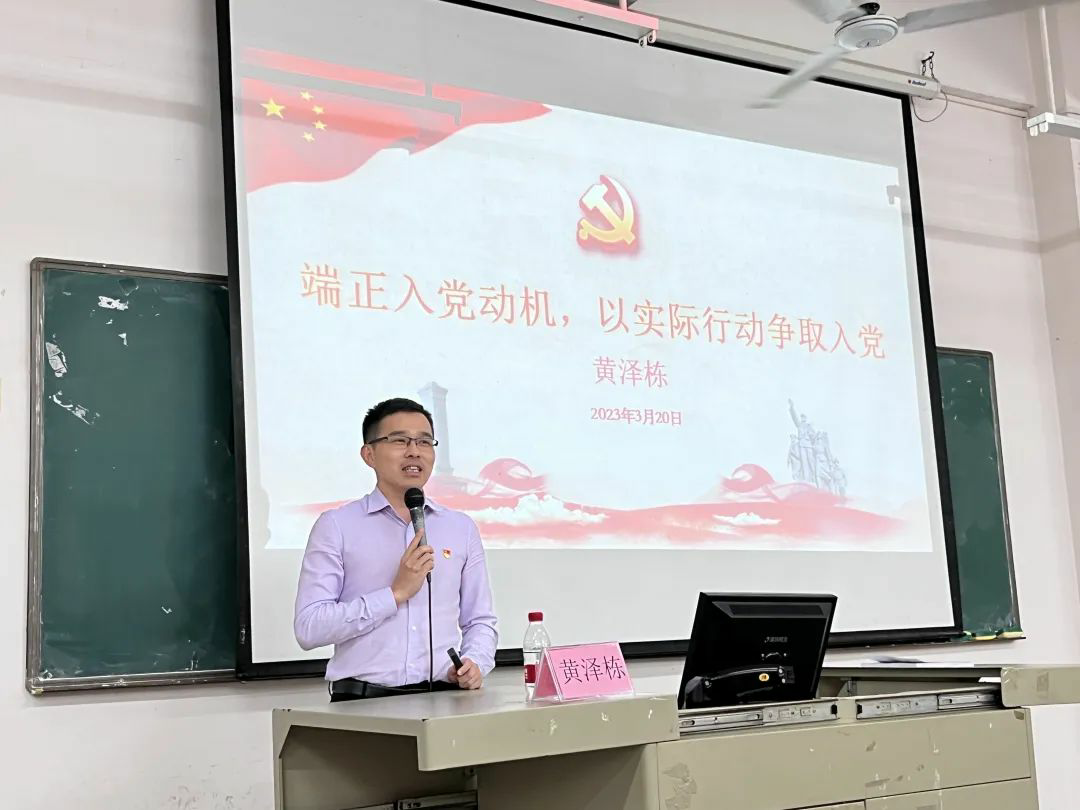 初级党课培训第一讲,由15vip太阳集团公司党总支副书记黄泽栋同志以“端正入党动机,以实际行动争取入党”为主题给学员讲授。黄书记首先指出每一个要求入党的同志,都应该充分认识端正入党动机的重要性,努力克服和纠正不正确的入党动机,不断提高思想认识,树立正确的入党动机。接着,黄书记给学员们讲解了入党动机的内涵和五种类型。他告诉学员们正确的入党动机是正确行动的精神力量,要求入党的同学只有树立了正确的入党动机,才能经受住党组织的考验,这种考验在新时代更有重要的现实意义。 最后,他就如何“端正入党动机,争取早日入党”给学员们提出了四点总结。 第一,只有端正入党动机,才能做到思想上入党; 第二,只有端正入党动机,才能产生正确的争取入党行动; 第三,只有端正入党动机,才能经受住党组织的考验; 第四,只有端正入党动机,才能保持党的先进性和纯洁性。