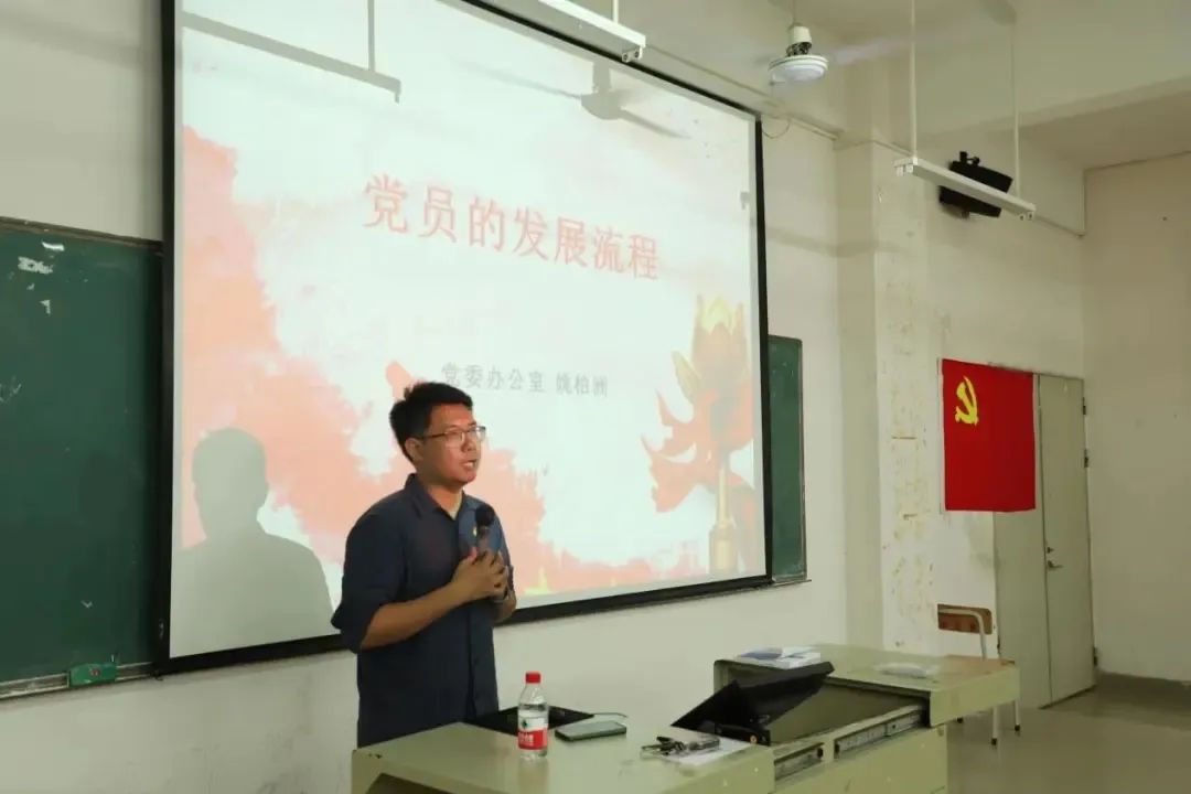 初级党课培训班第三讲由公司党委组织科科长姚柏洲老师担任讲师,本次大会以“党员的发展流程”为主题。姚柏洲老师从发展党员的工作方针,发展党员的工作原则和发展党员的工作流程三个方面给学员讲授党员的发展。姚柏洲老师给学员们详细讲述了如何一步一步发展成为一名优秀的共产党员,并告诉我们要经历5个阶段的身份: