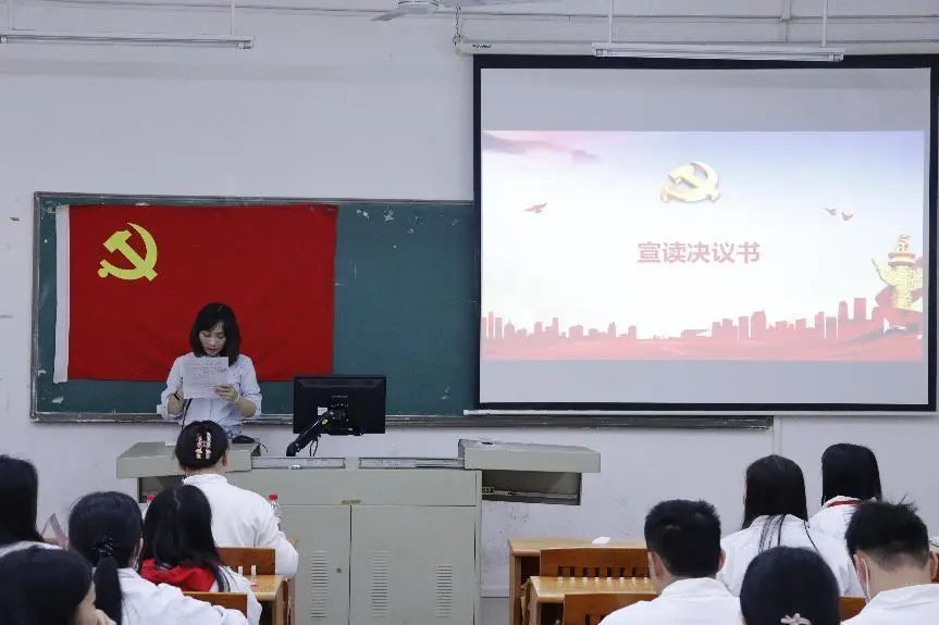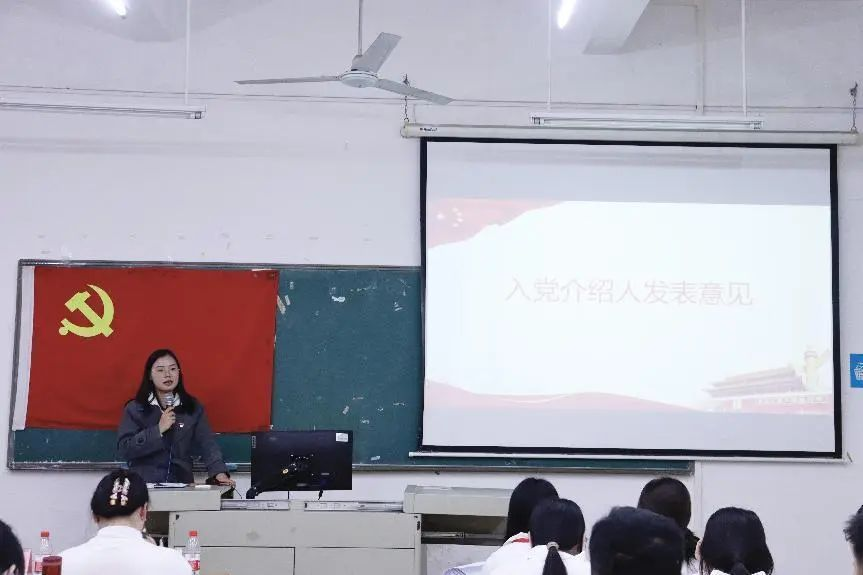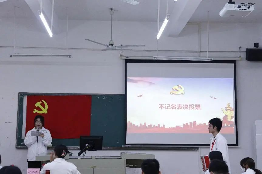 刘舒萍等14名同志依次上台向支部大会宣读入党志愿书,并由入党介绍人发表意见。刘舒萍等14名同志在作为入党积极分子期间严格要求自身行为规范,积极参与社会实践活动,掌握做好本职工作的知识和本领。